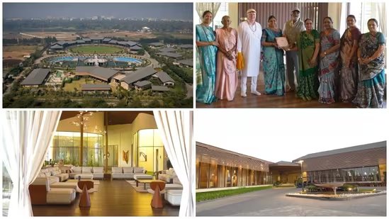 Savji Dholakia’s 50-acre resort-style residence in Surat features extra like a “temple” than a standard home. Positioned on the outskirts of the town, the property is designed to accommodate his large joint household of 64 members, all of whom dwell and work collectively.