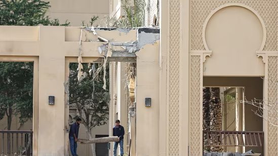 Particles is cleared from the broken Fairmont the Palm lodge in Dubai early within the warfare.